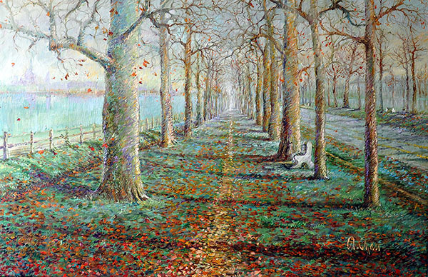 Ses œuvres isolent les mouvements des humains et/ou des objets. Ce faisant, de nouvelles séquences sont créées qui révèlent une relation inséparable entre le mouvement et la couleur. En appliquant l'abstraction, il séduit le spectateur dans un monde d'équilibre continu et de l'intervalle qui articule le flux des événements quotidiens. Des moments sont dépeints qui n'existent que pour ponctuer le drame humain afin de clarifier notre existence et de trouver un sens poétique dans la vie quotidienne.