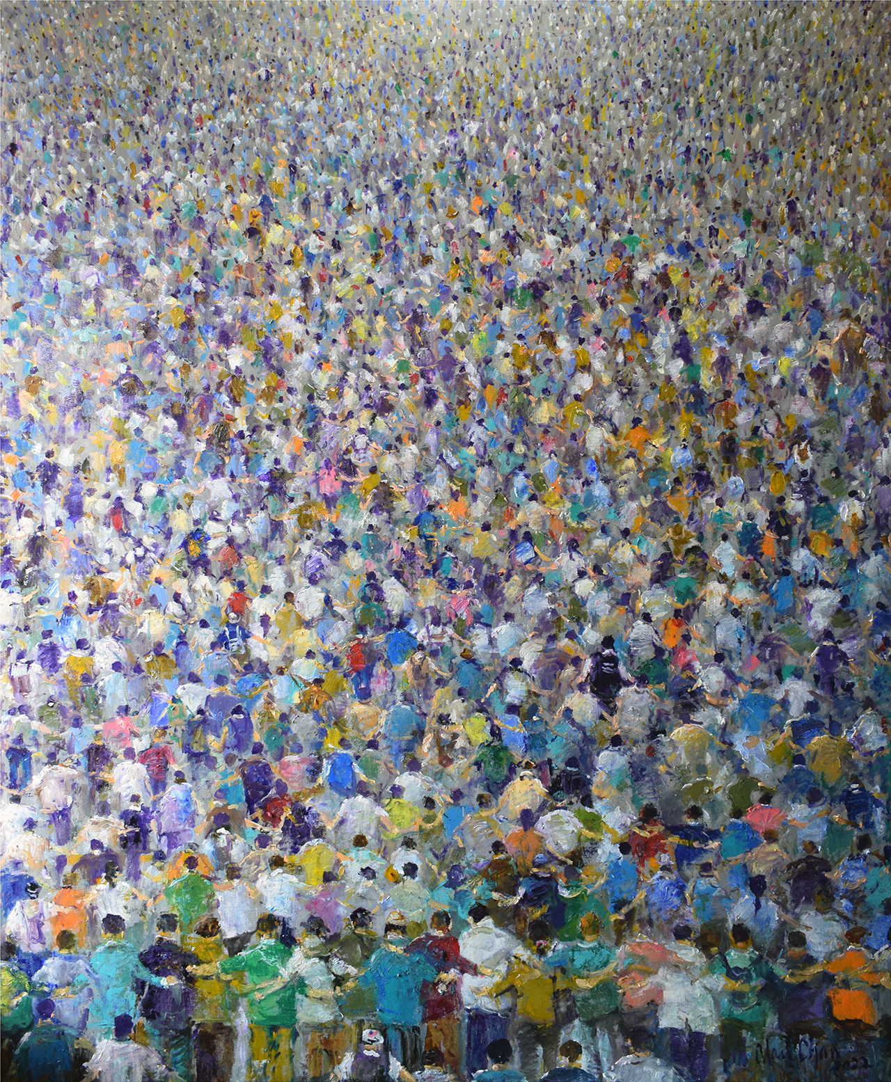 Chan's creative process is one that bridges the gap between reality and abstraction, where the vibrancy of life becomes a symphony of brushstrokes and colors that seduce the viewer into an ever-shifting equilibrium. His works illuminate the inherent humor and vulnerability within the movement and convey the unceasing quest of humanity.