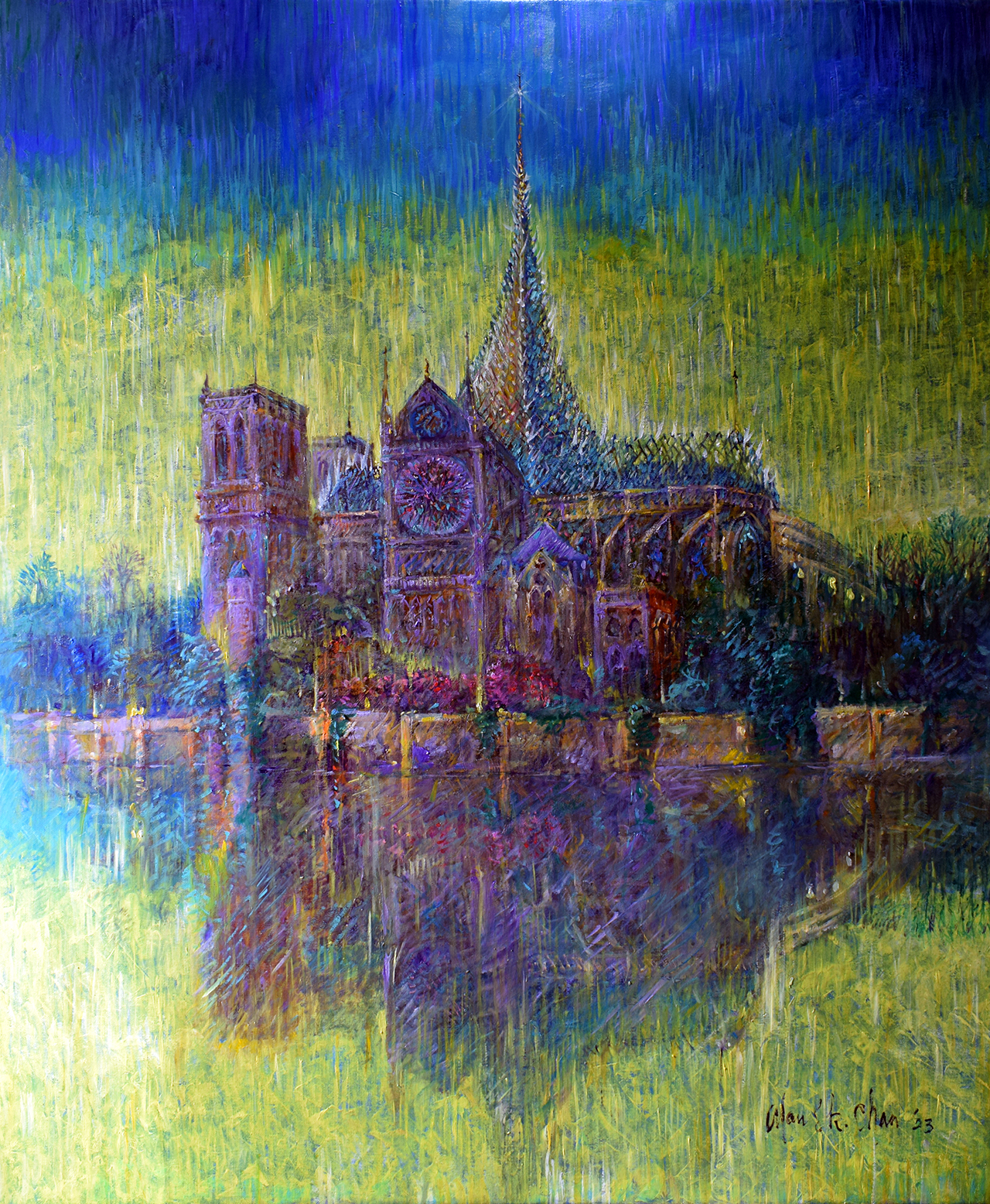 While Chan is a self-taught artist, his education was the world itself, from the bustling streets of Hong Kong to the hallowed halls of museums and art galleries. His journey eventually led him to France, where he not only settled as an architect but also nurtured his passion for painting. His works have graced the walls of galleries across the globe, from Paris to New York, San Mateo to Vienna.